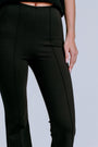 A ponte knit pull on pant with visible seam details. Cropped at the ankle.
