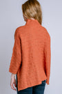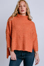 An oversized mock neck sweater in a horizontal braid pattern knit.