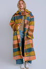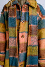 Bring a cozy edge to your outerwear collection with this longline coat, featured in a soft wool fabrication and single-breasted design, finished with a bold print and an attached scarf for an added touch.