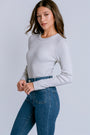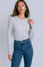 Add something special to your look with Liyah. With a banded crew neckline and long sleeves, this ribbed tee is made from our signature shine fabric that’s form-fitting, soft and gives a subtle sheen.