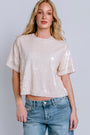 Add a little sparkle to your holiday wardrobe. Cut in allover matte sequins, with short sleeves and a boxy, cropped silhouette.