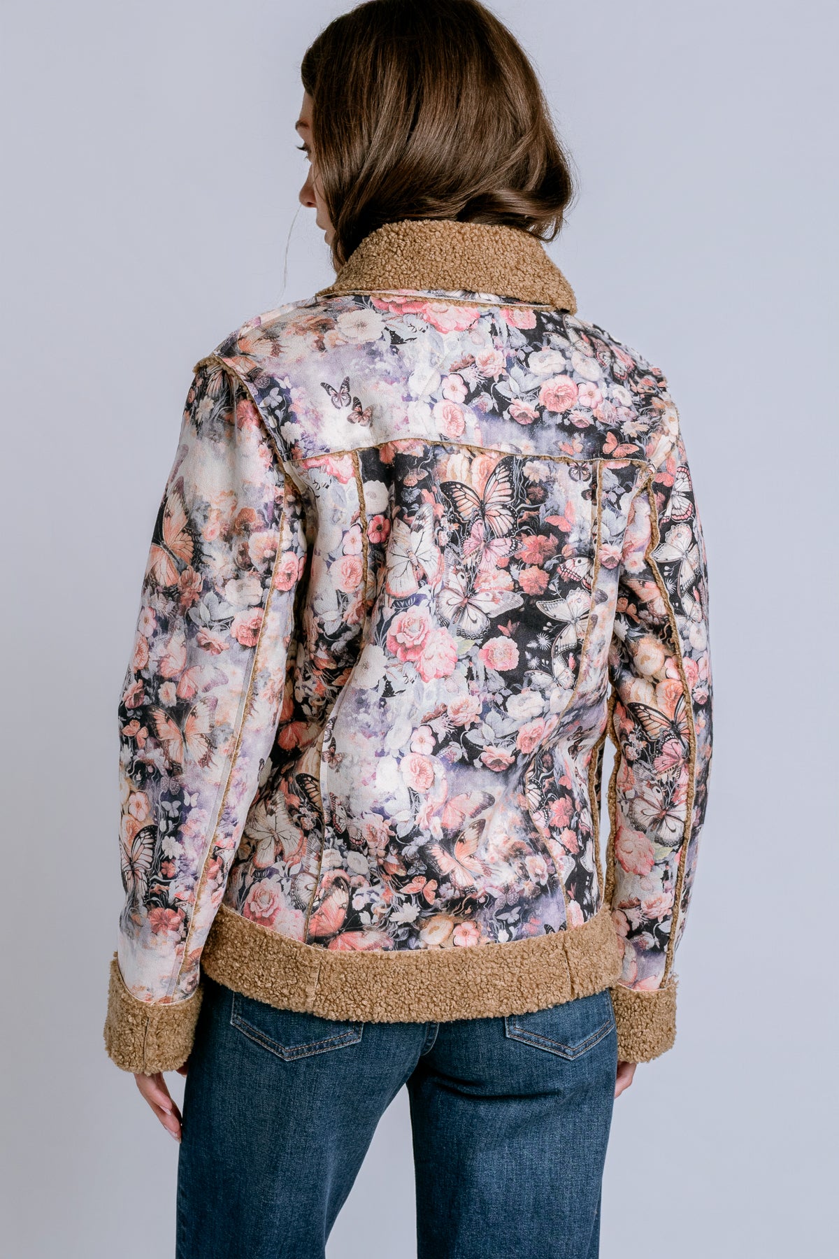 Discover the Maravilla Faux Suede Jacket—a must-have piece that blends artistic flair with everyday functionality. The captivating butterfly print on touchable faux suede creates instant visual appeal, while the soft faux sherpa trim delivers warmth without bulk. Its distinctive asymmetrical zip front offers a contemporary edge that flatters any frame, and polished gunmetal hardware adds sophisticated detail. Convenient side pockets keep your hands free and your essentials close.