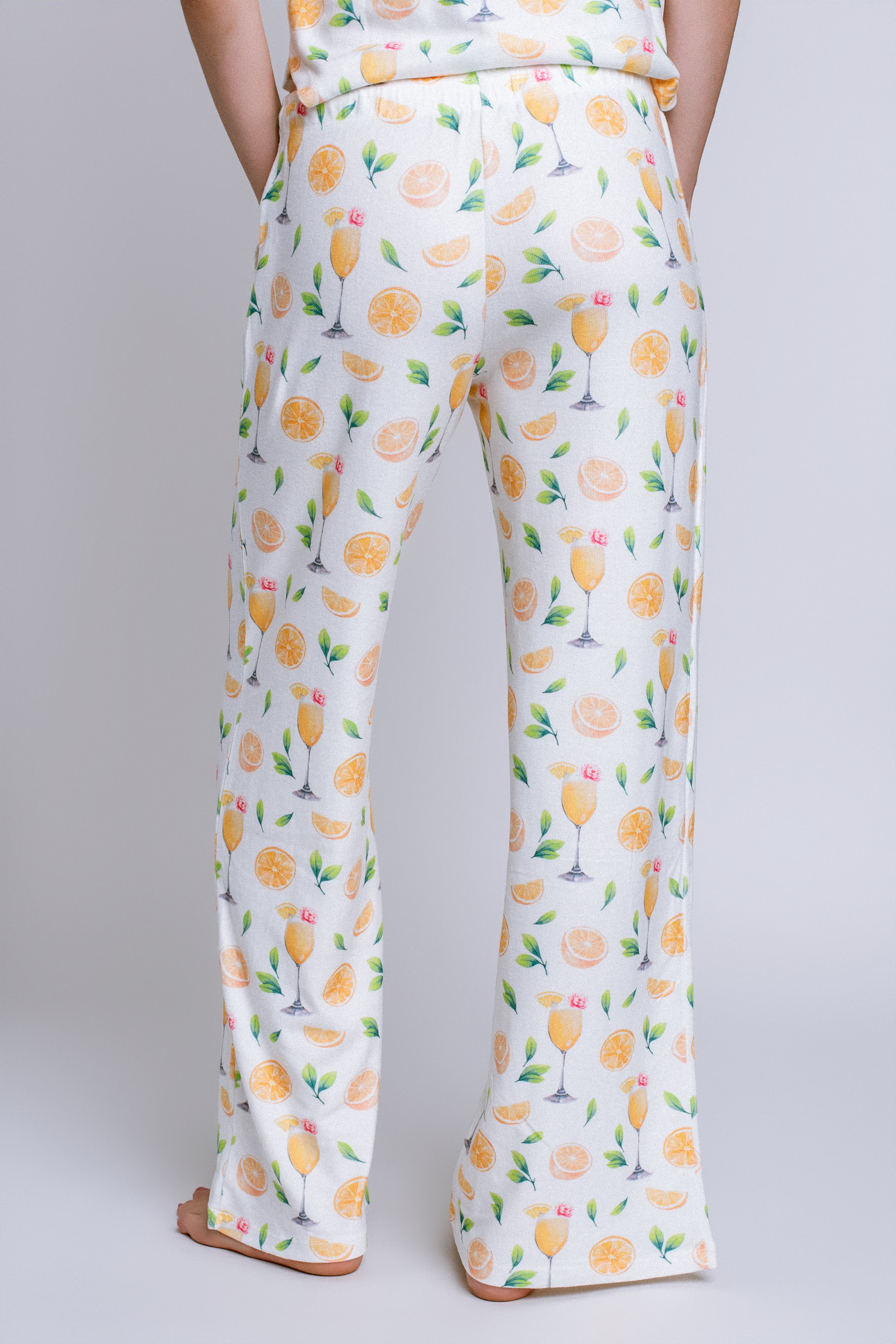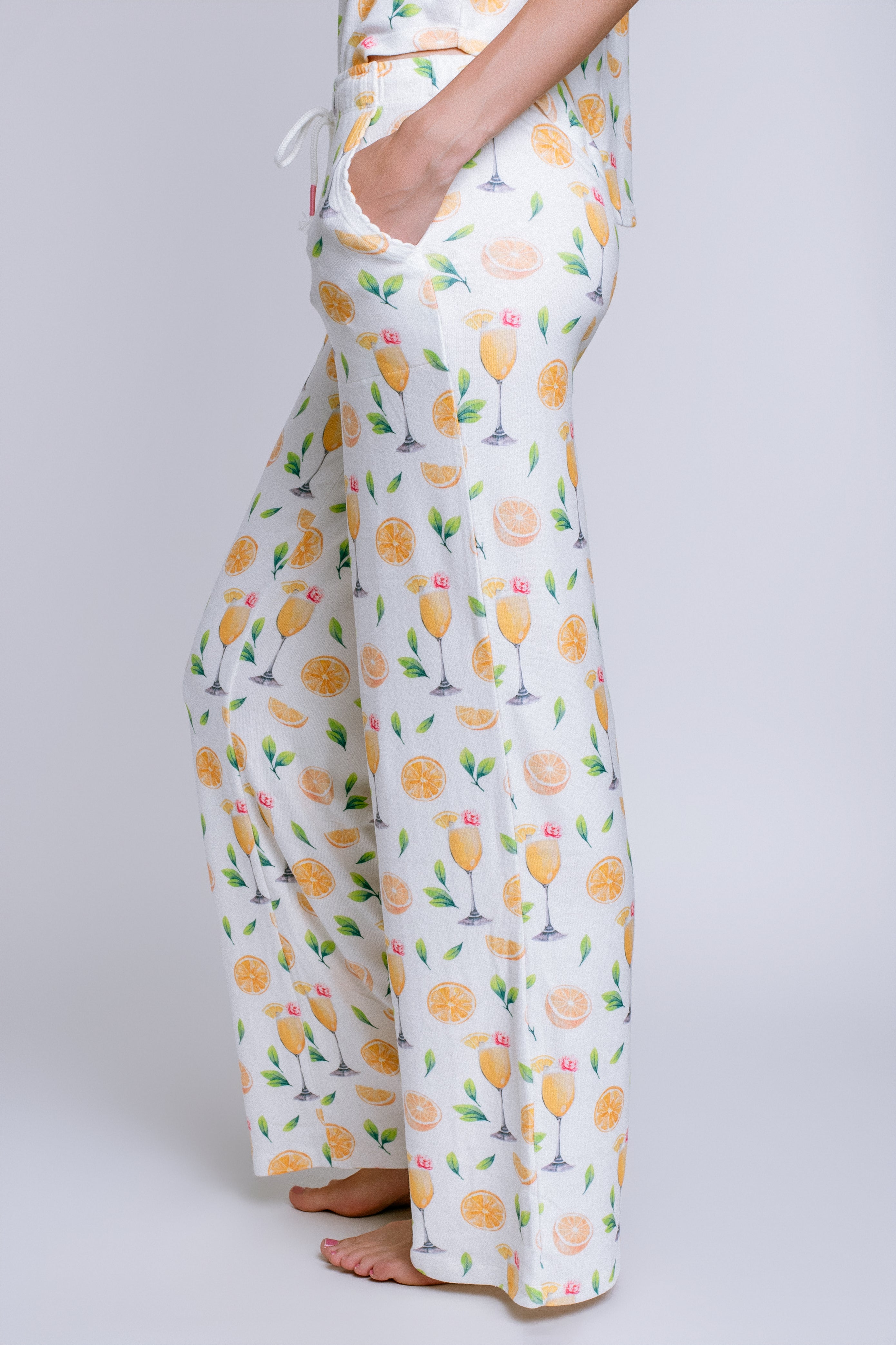 Cheers to sleeping in and bottomless at-home brunch. These full-length lounge pants are made from buttery-soft jersey that’s cool to the touch and stretchy in all the right ways. The print? A cheeky ode to everyone’s favorite brunch cocktail—complete with bubbly flutes, citrus slices, and fresh sprigs of green. Finished with side pockets and a drawstring waist for maximum lounge appeal.
