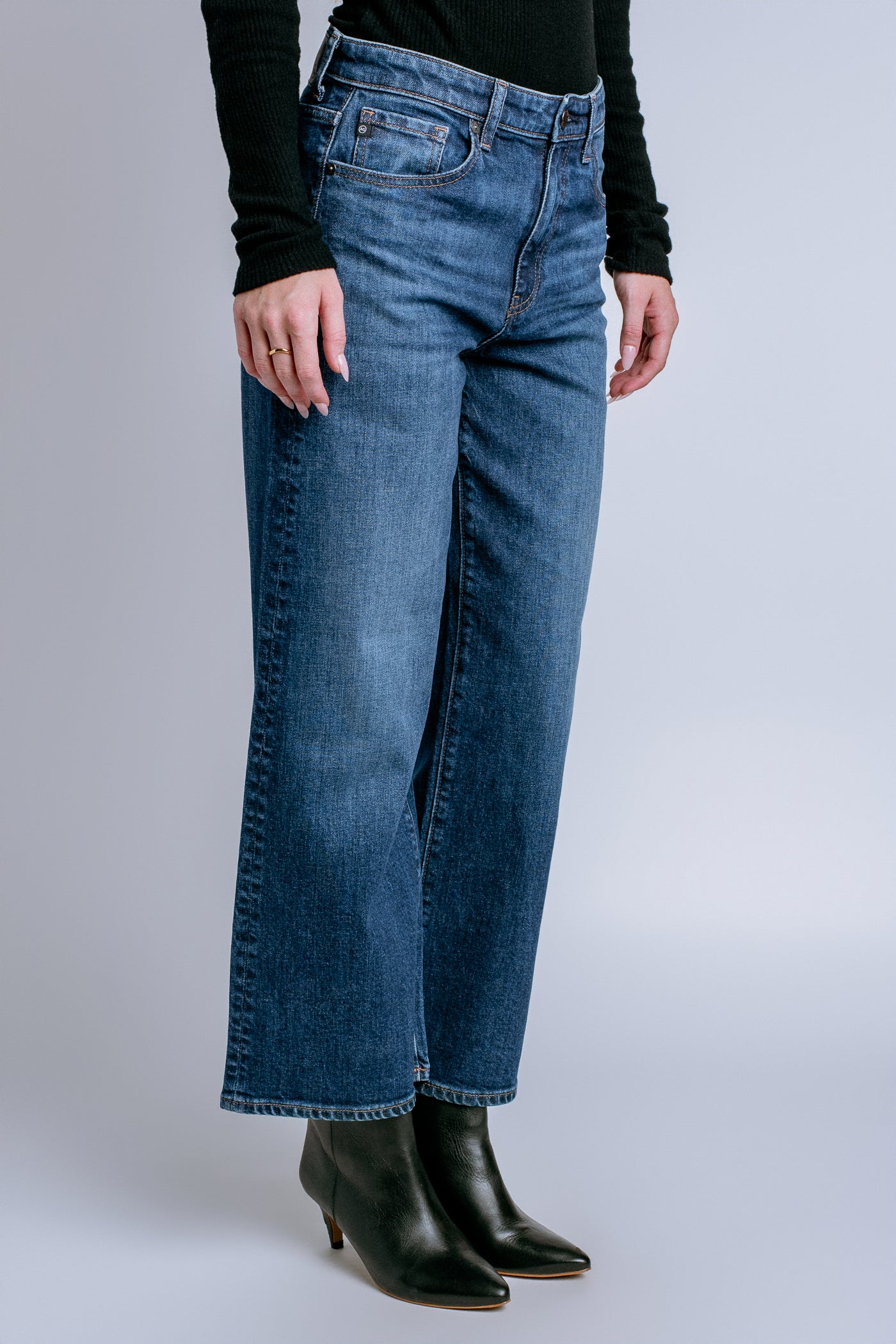 Cut from premium Italian stretch denim, these ankle-cropped wide-leg jeans are sure to be an everyday favorite.