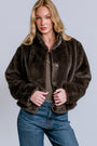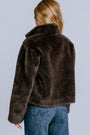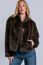 This jacket combines the luxury of soft faux fur with practical design elements, including a jumbo snap button front, mock neck collar, and slash pockets. The slightly cropped, lined construction ensures both warmth and a chic, cozy fit.